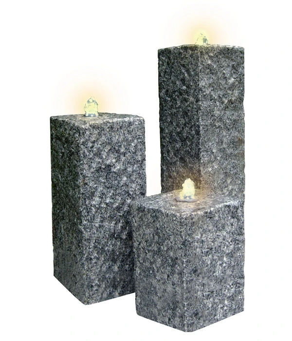 Die 3 Säulen bilden selbstbewusst ein Stein-Trio, das durch das Element Wasser eindrucksvoll „belebt“ wird, denn unaufhörlich sprudelt das Wasser oben aus dem Auslass und rinnt dann an den Granitsäulen herunter. Ein Schauspiel, das man Stunde um Stunde genießen kann, vor allem, wenn Sonnenlicht das Wasser zum Funkeln bringt. Doch das Dehner Granitbrunnen-Set Nizza ist nicht nur bei Tag ein ausdrucksstarkes Deko-Objekt, der Effekt ist bei Nacht fast noch beeindruckender. Denn dank der oben im Wasserauslass integrierten LED-Beleuchtung wird das Dehner Granitbrunnen-Set Nizza dann stimmungsvoll leuchten und in Ihrem Garten eine wunderschön romantische Atmosphäre zaubern.
