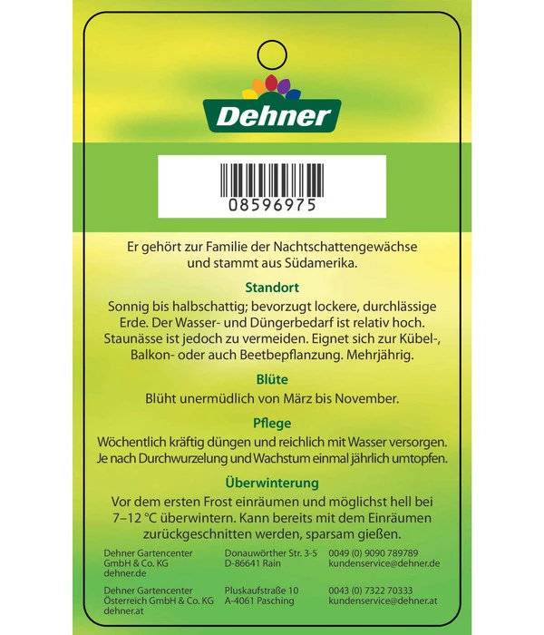 Der aus Südamerika stammende Enzianstrauch, gehört genauso wie die Kartoffel zu der Familie der Nachtschattengewächse. Deshalb ist er hierzulande auch oftmals unter dem Namen Kartoffelstrauch bekannt. Seine sternförmigen Blüten erstrahlen in Weiß oder Blau-Violett und erfreuen das Auge von April bis Oktober mit seiner schier unendlichen Blütenpracht. Der buschig wachsende Enzianstrauch verzaubert jeden Sitzplatz auf Balkon oder Terrasse und auch im Garten – bedenken Sie aber dass die Pflanze nicht winterhart ist und somit vor eisigen Wintern geschützt werden muss.