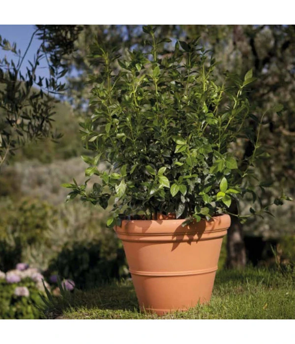 Der Pflanzkübel begeistert durch seine Tonoptik, besteht aber aus robustem Kunststoff. Dadurch ist er angenehm leicht und lässt sich bequem transportieren. Wenn Sie Ihre Pflanzen im Winter ins Haus bringen oder Sie es lieben, umzudekorieren, werden Sie sich über das angenehm geringe Gewicht freuen. Darüber hinaus ist der Kunststoff-Pflanzkübel ausgesprochen stabil und widerstandsfähig. Er hält sowohl Hitze als auch Frost problemlos stand und kann ohne Weiteres das ganze Jahr draußen stehen bleiben. Seine schöne Farbe ist UV-beständig und bleicht auch nach langer Zeit nicht aus. Setzen Sie mit dem schönen Accessoire einen stilvollen Akzent in Ihrem Innen- oder Außenbereich!