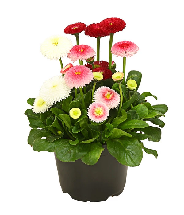 Das Gänseblümchen zählt wohl zu den bekanntesten Frühlingsblühern, da man es zu dieser frühen Jahreszeit auf jeder Wiese leuchten sieht. Vielleicht ist Ihnen die Bellis auch unter dem Namen Tausendschön oder Maßliebchen bekannt, denn unter diesen, und vielen anderen volkstümlichen Namen hat sich das Gänseblümchen seinen Ruf gemacht und ist bekannt als auflockernde Frühjahrspflanze mit fröhlich, frech verspielten Blüten. Zu unserem Premium Sortiment zählt das Gänseblümchen-Trio mit seinen leicht gefüllten Blüten die in drei verschiedenen Farben leuchten: in herrlichem Rot, klarem Weiß und kräftigem Rosa. Das Gänseblümchen ist eine anspruchslose Gartenpflanze und wie Sie bestimmt schon wissen, für Bepflanzungen jeglicher Art geeignet. Es blüht regelmäßig nach und erfreut bis in den Mai mit einem üppigen Blütenflor.