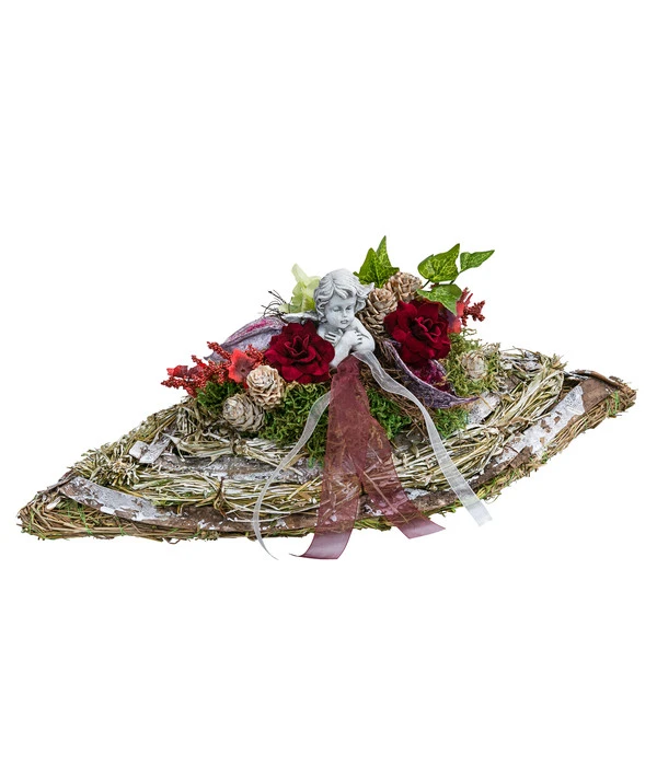 Die kunstvoll platzierten künstlichen Seidenrosen sind ein wahrer Blickfang und verzaubern nicht nur in der Gegenwart, sondern begleiten Sie auch im kommenden Jahr. Zusammen mit dem künstlichen Moos, Efeu, den Hortensienblüten und einem betenden Engel aus wetterfestem Polyresin schafft das Grabgesteck eine einzigartige Atmosphäre der Verbundenheit und des Gedenkens. Das Perth Grabgesteck ist mehr als nur ein Grabschmuck – es ist eine liebevolle Erinnerung, die den Raum mit Anmut erfüllt. Lassen Sie sich von seiner Schönheit berühren und schaffen Sie so einen Ort der Stille, an dem Sie Ihrem geliebten Menschen nahe sein können. Sichern Sie sich gleich das Grabgesteck Perth von Dehner.