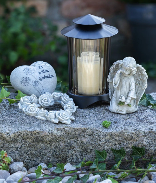 Das Grab eines geliebten Menschen auf dem Friedhof ist ein ruhiger Ort für die Erinnerung. Bei der idealen Dekoration hilft Ihnen die Grablampe von Moll. Ihre schlichte, aber elegante Ausstrahlung macht sie zu einem wirklich würdevollem Grabschmuck. Mit dem praktischen Erdspieß lässt sich die Lampe sicher im Boden befestigen. Bestellen Sie noch heute ein echtes Highlight und senden Sie das warme Licht der Grablampe von Moll zur Erinnerung in die Welt.