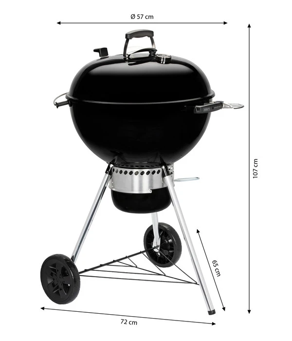 Damit Sie Ihre Kohlemenge ideal bemessen können erhalten Sie mit Ihrem Weber Holzkohle-Kugelgrill Master-Touch GBS E-5750 einen passenden Brikett-Messbecher. Selbstverständlich besteht der Deckelgriff aus hitze- und UV-beständigem Duroplast mit Hitzeschutz und sind die bruch- und wetterfesten Transporträder mit einer gummierten Lauffläche ausgestattet. damit Ihr neuer Grill Ihnen stets „leichtfüßigˮ folgen kann.