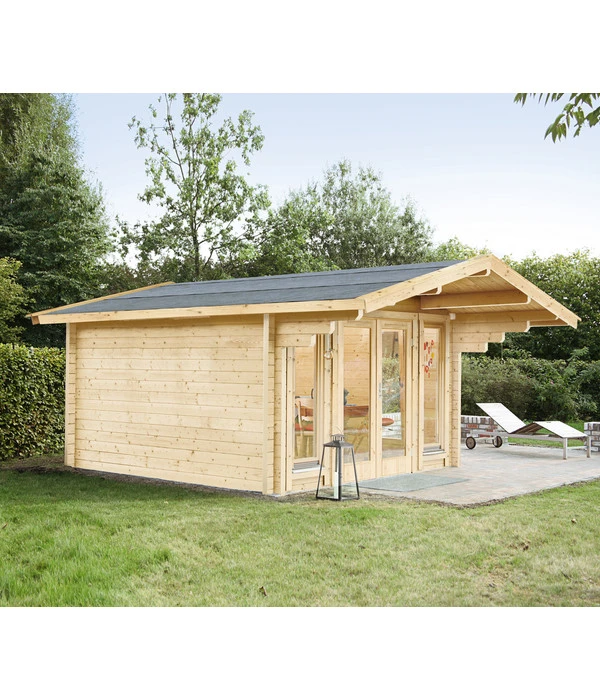 Neben der stattlichen Wandstärke von 70 mm, sind auch die anderen Teile des Wolff Finnhaus Gartenhaus Hammerfest 70-D aus hochwertiger, Nordischer Fichte. Die stabilen Dachbretter haben eine Dicke von 20 mm, die Fußbodenbohlen sind 28 mm stark. Und Sie wissen ja, dass Nordisches Holz schon von Natur aus besonders stabil und langlebig ist, denn dank des rauen Klimas im Norden wächst es sehr langsam. Tipp: Bei der Lieferung ist das Holz naturbelassen, wir empfehlen Ihnen aber, es mit einer Holzschutzlasur zu behandeln, um die Wetterfestigkeit und Widerstandsfähigkeit nochmals zu erhöhen.