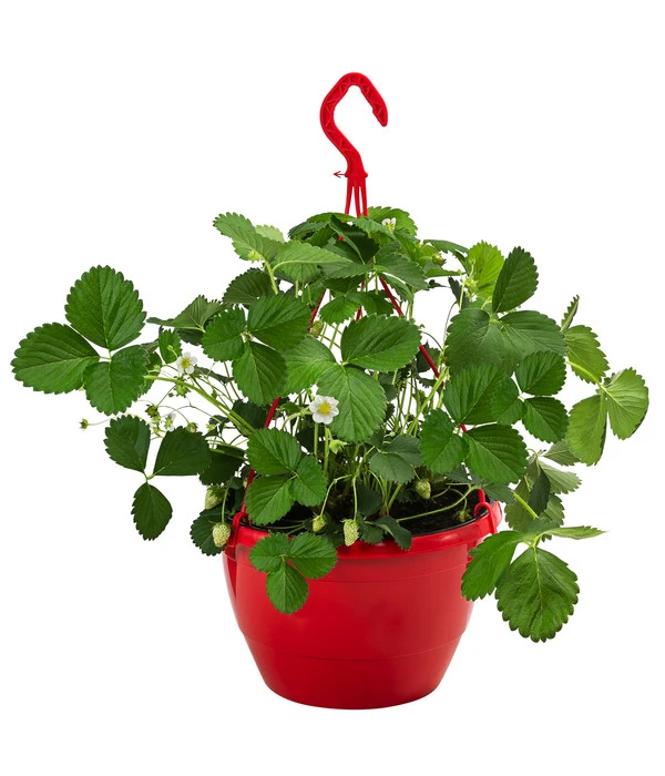 Stellen Sie sich vor: Sie sitzen bequem auf Ihrem Balkon oder der Terrasse, genießen den schönen Sommertag und strecken ab und zu die Hände in die Höhe, um eine leckere, rote Beere von der XXL Erdbeerampel zu pflücken. Eine herrliche Vorstellung, nicht wahr? Aber eine, die kein Traum bleiben muss, sondern ganz schnell Realität werden kann, wenn Sie schnell zu Dehner kommen und kurze Zeit später die Ampel bei sich aufhängen! Wir haben die gesunde, kräftige Erdbeerpflanze gleich in einen knallroten Topf gepflanzt, der einen dekorativen Kontrast zu den grünen Blättern der Pflanze bildet und zugleich die Beeren animieren soll, ebenso kräftig rot zu werden, denn dann ist das Aroma einfach himmlisch. Also gleich die XXL Erdbeerampel besorgen, aufhängen und von Juni ab die mittelgroßen, süßen und besonders saftigen Erdbeeren ernten – bis in den September!