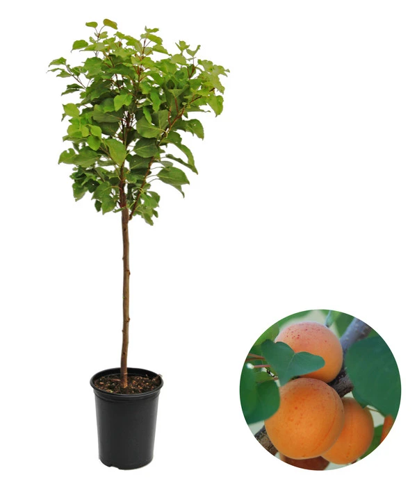 Wie kleine orangefarbene Sonnen leuchten die Früchte zwischen dem sattgrünen Laub und lassen Ihnen das Wasser im Mund zusammenlaufen – die Zwergaprikose ‘Kaluna‘ verspricht einen ganz besonderen Obstgenuss: süß-aromatisch und saftiger als viele andere Aprikosensorten! Sie werden sich im Sommer nur schwer entscheiden können, was Ihnen besser schmeckt: die Aprikosen frisch vom Baum geerntet, als fruchtig-süße Marmelade, als Marillenknödel, auf Kuchen, im Salat, zu Geflügel und, und, und. Wie gut, dass die Aprikosenernte von Juli bis Ende August, manchmal sogar bis Anfang September dauert und Sie so ausreichend Gelegenheit haben, viele Rezepte auszuprobieren! Und weil die Zwergaprikose ‘Kaluna‘ auf einer schwachwachsenden Spezialwurzel veredelt wurde, erreicht das Bäumchen mit seiner runden Krone nur eine Wuchshöhe von 120-150 cm, also ideal für den Obstanbau auf Balkon, Terrasse oder in einem kleinen Garten. Lassen Sie sich schon zwischen März und Mai von den schneeweißen Aprikosenblüten auf den sommerlichen Fruchtgenuss einstimmen und holen Sie sich gleich die Zwergaprikose ‘Kaluna‘!